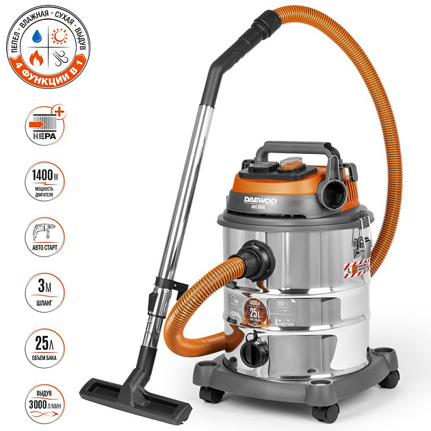 - Всасывающий шланг с алюминиевой обмоткой (длина 1,5 м);